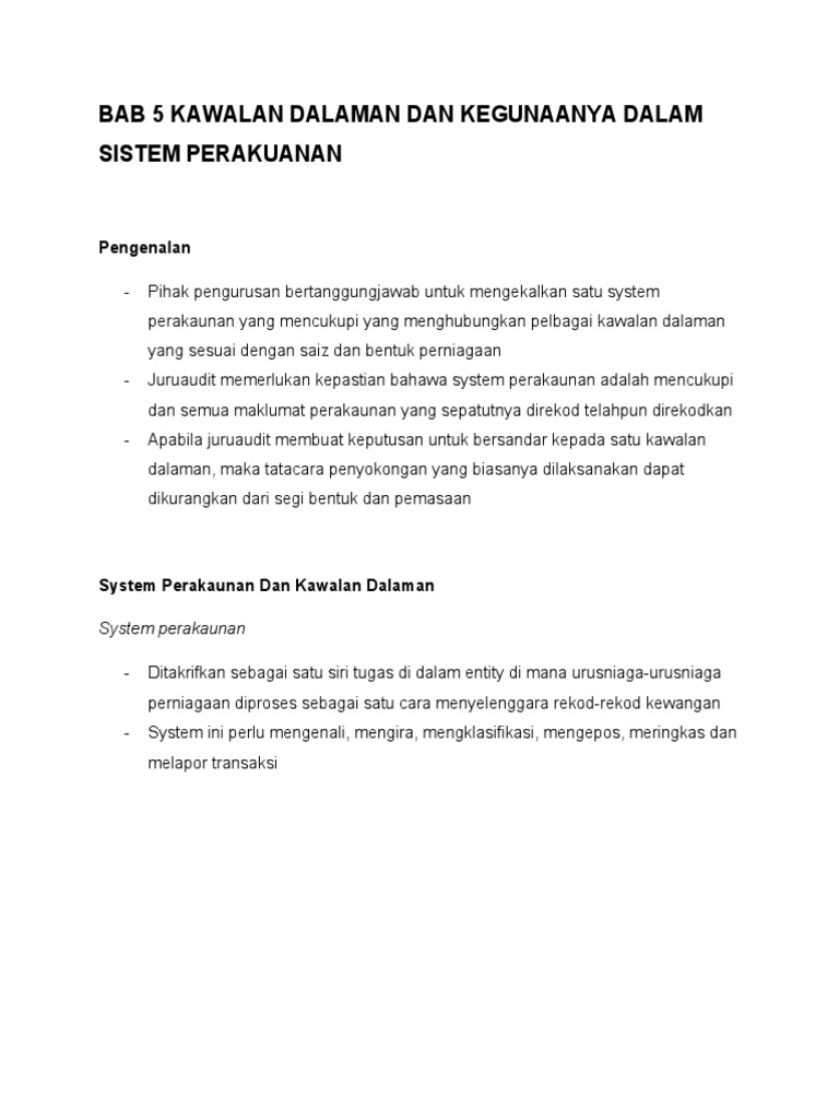Feb 11 2012 PERAKAUNAN UNTUK TUNAI 83 Belanjawan Tunai dan Varian 81 Kawalan tunai 82 Penyata Penyesuaian Bank. Jun 15 2014 BAB 5 KAWALAN DALAMAN DAN KEGUNAANYA DALAM SISTEM PERAKUANAN. Perakaunan Untuk Kawalan Dalaman.