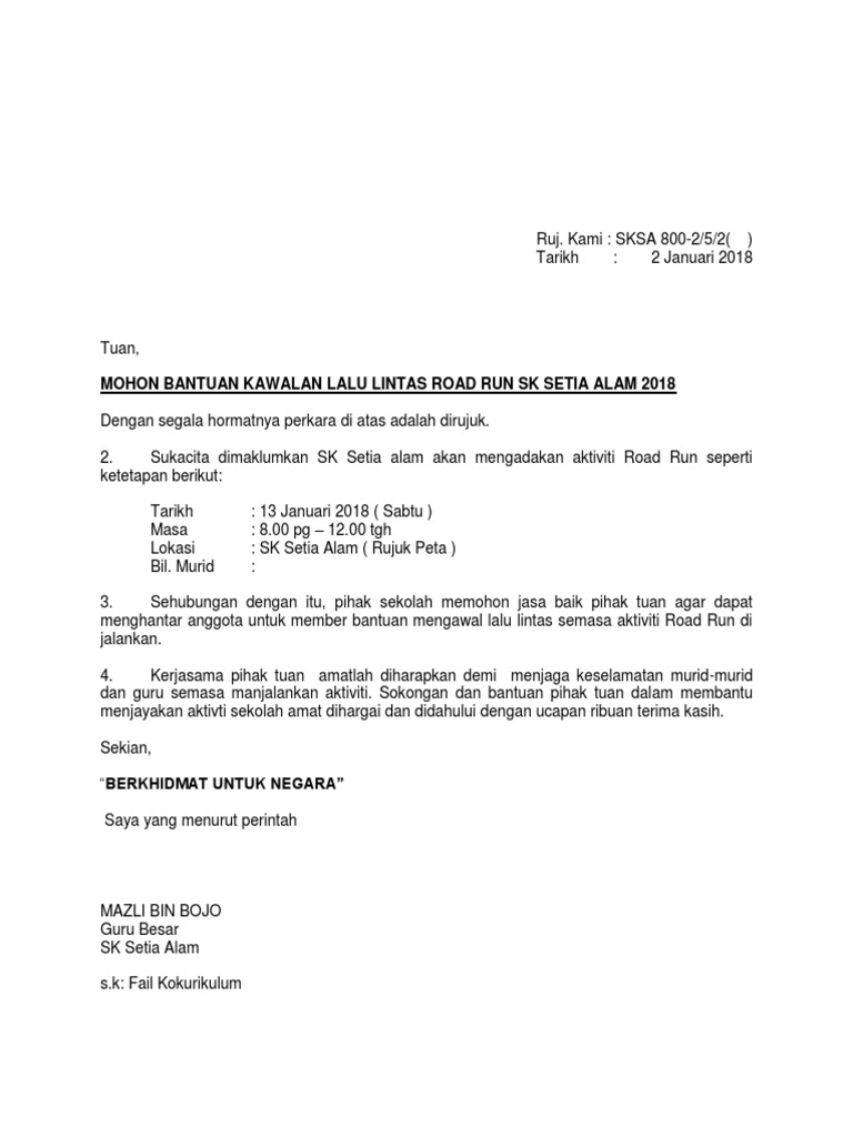 Rujukan Kami Tarikh. Jun 08 2018 Contoh Surat Mohon Bantuan Kawalan Lalulintas RELA. Dec 31 2020 JADUAL LATIHAN SISTEM eSIMS KEPADA SYARIKATAGENSI PERKHIDMATAN KAWALAN KESELAMATAN MALAYSIA BAHARU.
