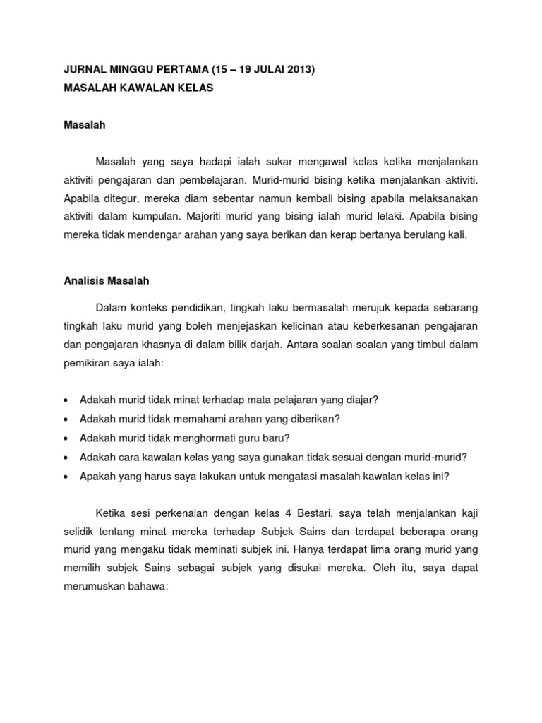 Jul 28 2016 Saya tidak sepatutnya menghadapi masalah dalam kawalan kelas memandangkan saya telah mempunyai pengalaman mengajar selama lapan tahun. Topik-topik yang difokuskan dalam modul ini adalah topik tatabahasa dalam huraian sukatan pelajaran bahasa Arab tingkatan satu. Masalah kawalan kelas ini boleh wujud disebabkan oleh kurangnya kesedaran murid-murid tentang pentingnya menjaga kelakuan dan kesan tingkah laku mereka.